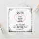 Liebe versage nie Bibel Versöhnungseinladungen mit silberfarbenem Hintergrund, hellrosa Herzakzent, schwarzer Typografie. Zu den quadratischen Einladungen zählen antike, blumengeschmückte Kanten. Liebe erweckt, glaubt, hofft, hält alles an; Liebe versage nie Schrift von I Korinthen 13; 7, 8. Weitere Informationen finden Sie unter Christliche Zitate; Link unten: