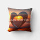 Liebe Versage nie Throw Kissen, mit einem herzförmigen Felsen am Strand. Atemberaubender Sonnenuntergang, der durch das Herz strahlt, mit dem Wort "LIEBE VERSAGE NIEMALS". Der Text kann individuell angepasst werden, um ihn für Sie individuell und individuell zu gestalten.