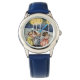 Kinderuhr aus Edelstahl mit blauem Lederarmband