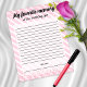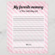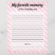 Erstellen Sie dauerhafte Erinnerungen mit der Lieblingsgedächtnis des Geburtstagskarls! Dieses ansprechende Design mit rosa Streifen und Glitzer-Akzenten ermöglicht es den Gästen, ihre Lieblingslieder des Geburtstagsmädchens aufzuschreiben. Es ist eine herzliche und persönliche Touch, die jedem Feiern Wärme und Liebe verleiht. Perfekt für Geburtstage, Duschen und vieles mehr, diese Blätter können gesammelt und als Sake gepflegt werden. Ermuntern Sie Ihre Gäste, ihre besonderen Momente zu teilen und die Geburtstagsfeier noch unvergesslicher zu gestalten!