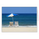 Das ist ein Foto von einigen leeren Strandstühlen, die am Meer aufgestellt sind.