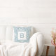 Modernes hellblaues botanisches Muster mit Monogramm Kissen.