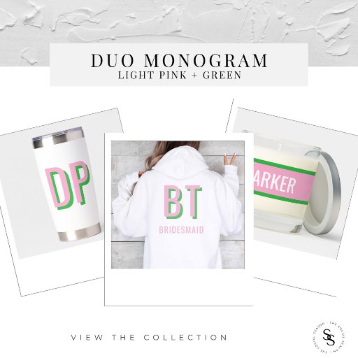 Light Pink + Green | Präsentieren Sie Ihre Hochzeitsparty-Geschenke stilvoll mit der Shadow Monogram Collection mit einem eleganten zweifarbigen Monogramm mit Stripakzent. Ideal für Brautpartys, Bachelorettenausflüge oder Hochzeitstag-Goodies. Klicken Sie auf "Dieses Design personalisieren", um Ihre Daten hinzuzufügen. Die passenden Hochzeitsgeschenke, Brautparty Accessoires und Junggeselinnen-Abschied-Must-Haves stehen zur Verfügung. Bitte schicken Sie uns eine Nachricht mit Fragen oder um Sonderanfertigungen anzufordern.