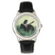 Uhr, Vintage Männeruhr mit schwarzem Lederarmband