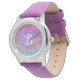 Uhr, Kinderuhr aus Edelstahluhr mit lila Lederarmband