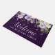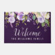 Begrüßte Typografie mit Familiennamen und Aquarell lila und pfirsichfarbene Blume. Sie können Farben und Text auf dieser Matte bearbeiten