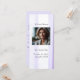 Feiern Sie das Leben und das Erbe Ihrer Lieben mit dieser Beerdigung Memorial Gebet Lesezeichen Card. Dieser mit einem lila Stoff-inspiriert Hintergrund entworfene Sake bietet eine zeitlose und gemütliche Hommage, die sich perfekt zum Teilen mit Familie und Freunden eignet. Sie können auch ein Foto Ihrer Lieben verwenden und den Text personalisieren, um Ihre Bedürfnisse Anzug zu geben.