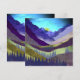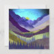 Eine abstrakte Landschaft mit einzigartigen Texturen, die eine lila und Lavendelberglandschaft mit atemberaubendem blauen Himmel und Vogelschwarm in lila, Lavendeltönen, Beige, Gelb und Rosa zeigen.