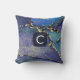 Lila Blue Aquamarin und Gold Liquid Art Monogram Kissen