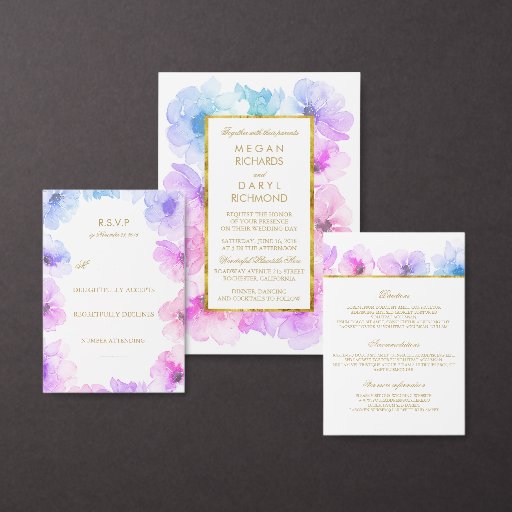 Watercolor Flowers Gold Frame Wedding CollectionDesignt von Jinaiji Custom Invitations