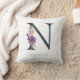 Lila Blumenbuchstabe N Monogram Kissen