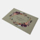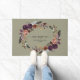 Diese Begrüßungsmatte verfügt über einen lila und goldenen Blumenkranz in Aquarellfarben, eine elegante Kalligraphie und Ihren Familiennamen.