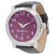 Lila Blumentextilien mit großen Zahlen und Namen Armbanduhr