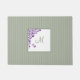 Hütte Salbei grüner Streifen und blumengeheimes Gartenmuster im lila mit Skript Schriftart Monogramm, Single erste Türmatte. Personalisieren Sie mit Ihrem eigenen Initial. Entworfen, um unsere Secret Garden Hütte Collection zu passen.