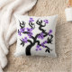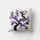 Lila und schwarze Liebesvögel Sakura Kirschbaum mit Blüten werfen Kissen. Es verfügt über eine lila Blume Sakura Baum mit schwarzen Herzen in der Mitte und ein Paar Liebesvögel.