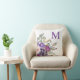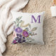 Schöne pastellrosa und lila boho-farbene Blume mit Salbei grünen Blätter auf weißem Monogramm Dekorator werfen Kissen. Personalisieren Sie mit Ihrem ersten. Dieses Kissen wird eine wunderbare Ergänzung zu Ihren Frühjahr- und Sommer-Zuhause Dekorationsprojekten.