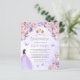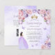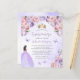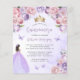 Diese schöne Quinceañera Einladung zeigt eine Grenze von lila lila und rot rosa Rosen auf einem lila Aquarell. Eine goldene Tiara, ein brünettes Mädchen in einem lila Prinzessenkleid und kleine lila Schmetterlinge schmücken den Text. Das Wort "Quinceañera" und der Name des Ehrengast erscheinen in eleganter lila Handschrift, der übrige Text in grauem Sans Serif Schriftart. Fügen Sie auf der Rückseite zusätzlich einen QR-Code hinzu, um Ihren Gästen zu helfen, Ihre quinceañera Website und UAWG online zu besuchen.