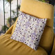 Boho und rustikales Kissen mit handgezeichneter Abbildung von Bögen und Blume in lila Farben.