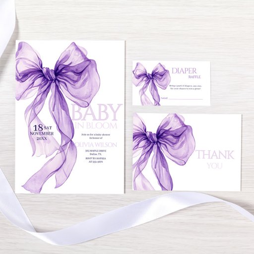Purple Bow Watercolor Baby In Bloom Baby Shower Designt von Zakreva Olha