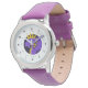 Uhr, Kinderuhr aus Edelstahluhr mit lila Lederarmband