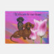 Wie schön diese Türmatte ist mit Frühlingszeit pastellfarben lila und rosa Wasserfarben, Tulpen und natürlich zwei bezaubernde Dackel bereit, um Ihre Gäste willkommen zu heißen und ein Lächeln auf ihr Gesicht zu setzen.