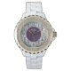 Stilvolle und farbenfrohe lila Federn mit Monogramm Uhr, personalisieren für sich selbst oder für ein Geschenk.