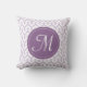 Ein weißes Muster auf einem lila Kissen mit Ihrer Initiale.