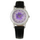 Lila Geranium-Blume auf der Uhr gedruckt. Blumenmuster-Uhr für Liebhaber von Blume oder Natur. Sie können es auch als Geschenk geben.