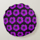 Lila Geranium-Blumenmuster auf Schwarz Rundes Kissen
