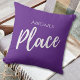 Das weiße "Place"-Skript auf einem lila Hintergrund-Design mit individuelle Name, das Sie einfach mit Ihrem eigenen personalisieren können.