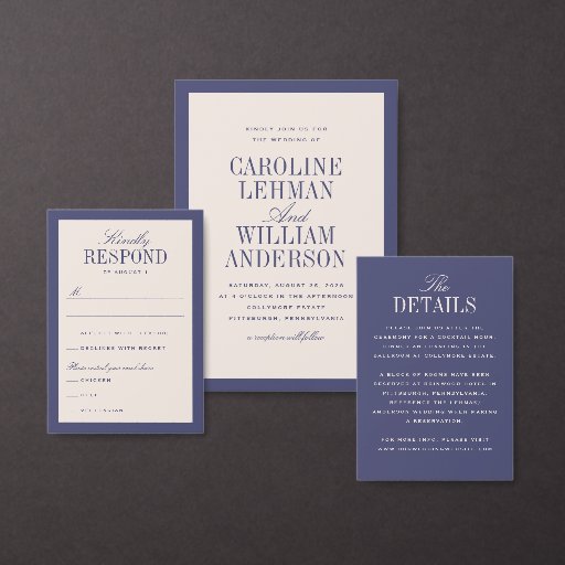 Freuen Sie sich auf die lila und cremefarbene Einladung zu Ihrer Hochzeit.