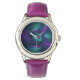 Uhr, Kinderuhr aus Edelstahluhr mit lila Lederarmband