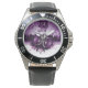 Uhr, Kinderuhr aus Edelstahluhr mit lila Lederarmband