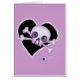 Dieser lila Schädel ist wie ein Neonschild dekoriert und ist ein Set auf einem schwarzen Herz, das in Neon lila umrissen ist. Der Schädel hat kleinere Herzen mit einem bunten Muster, das die Augäpfel sind, und das große Herz ist mit einer Zugkette betont.