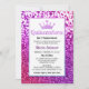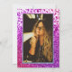 Ein moderner, hübscher und eleganter lila Glitzer lädt mit einem Foto auf der Rückseite zum Verweilen ein. Quinceañera Feier Einladung mit einem weißen Hintergrund und glitzernden lila ombre Rahmen. Perfekt für eine Prinzessin quinceañera, perfekt für sie, die modische, die das moderne Muster und die Glam Liebe.