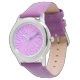 Uhr, Kinderuhr aus Edelstahluhr mit lila Lederarmband