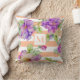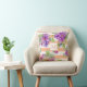 Lila rosa, blumenorange weiße Streifen in Aquarell Kissen