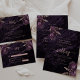 Diese elegante Hochzeitskunstkarte bietet lila Blumenstrauß-Set mit Rose Gold Imitate Folie in zwei Ecken, auf einem Hintergrund Bild von lila Aquarellfarben. Der benutzerdefinierbare Text kombiniert Rose-Rosa-Serif-, Kursivschrift- und Handschriftzeichen-Schriftart. Die Rückseite ist mit einem lila und Rose goldenen Blumendesign und einem passenden Age-Design ausgestattet.