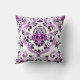 Lila Schwarz-weißes Damask Blumenmuster Elegant Kissen