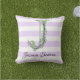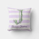 Lila Streifen-Monogramm des Lavendels Kissen