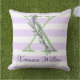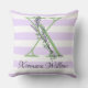 Lila Streifen-Monogramm des Lavendels Kissen