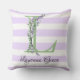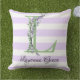 Lila Streifen-Monogramm des Lavendels Kissen