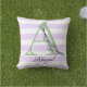Lila Streifen-Monogramm des Lavendels Kissen
