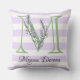 Lila Streifen-Monogramm des Lavendels Kissen