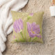 Schöne lila Tulpen auf Vintagem Hintergrund machen dieses Kissen zu einem ansprechenden Akzent für Ihre Dekorationsbedürfnisse. Naturfaser aus 100% Baumwolle zeigt diese stilvolle Aquarellblüte. Original Aquarellkunst und Design von Audrey Ascenzo.