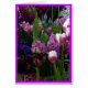 Tulpen, Gänseblümchen und Hyazinthen in den Schatten von Lila, von rosa und Blau verzieren Frühlingsgartenanmerkungen, -Briefmarken u. -aufkleber.