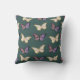 Lila und goldene Schmetterlinge dunkelgrün Kissen