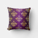 Lila und goldfarbenes Vintages Damastmuster Kissen