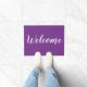 Eine lila Vordertür-Matte mit Begrüßungsbotschaft. Die Farbe der Eingangstüre ist individuell einstellbar. Wechseln Sie zu Ihrer Lieblingsfarbe, um zu Ihrer Wohngestaltung zu passen.