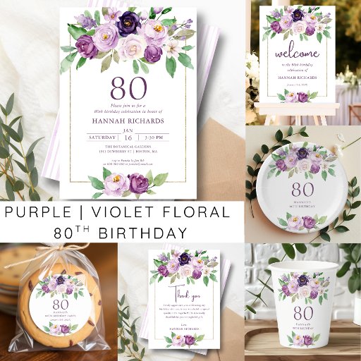 Purple | Violet Floral 80th BirthdayDesignt von Natalie